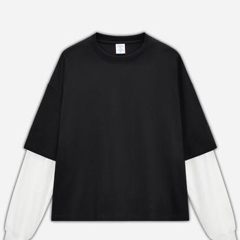 Felpa in due pezzi a contrasto colore t-shirt 280G cotone puro stile americano con giuntura a maniche lunghe