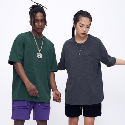 T-shirt con acqua pesante da uomo con spalle larghe e ricami pesanti retrò alla moda t-shirt